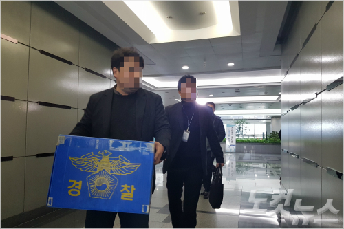 경찰 관계자들이 압수물을 들고 나오는 모습. (사진=김민성 기자)