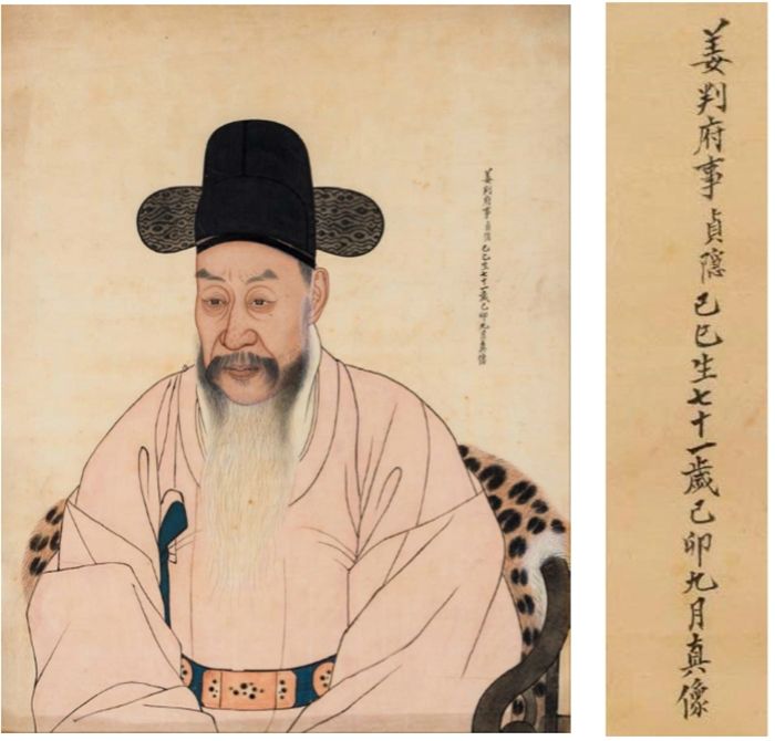 19일 오후 문화재청이 공개한 '강노 초상'(1879, 지본 채색), 오른쪽은 묵서 세부 (사진=문화재청 제공)