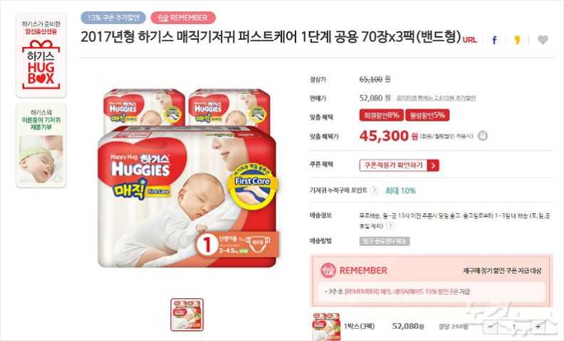 25일 CBS노컷뉴스 취재결과, 유한킴벌리 본사가 운영하는 온라인몰 '맘큐'는 기저귀 가격이 대리점 공급가격보다 훨씬 싼 것으로 나타났다.