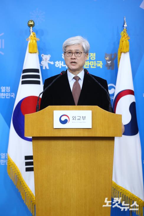 27일 오후 서올 중로구 외교부 청사에서 외교부장관 직속의 ‘한일 일본군위안부 피해자 문제 합의 검토 태스크포스(TF) 오태규 위원장이 5개월간 검토한 결과를 발표하고 있다.