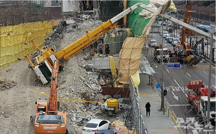 앞서 전날 오전 서울 강서구 공항대로 인근의 철거 현장에서 5톤급 굴삭기를 들어 올리던 크레인이 갑작스레 전도되면서 도로 위에 정차해있던 시내버스를 덮쳤다.