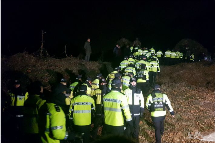 경찰 기동대가 군산 내초동 야산에 준희 양 시신을 수색하러 투입되는 모습. (사진=김민성 기자)