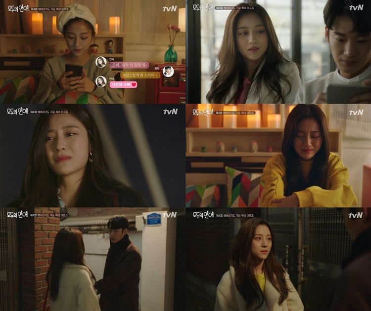 '모두의 연애' 강민아가 변해버린 연인 때문에 눈물짓고 시간을 갖자고 해, '현실 연애'를 리얼하게 그려내 공감을 불러일으켰다.