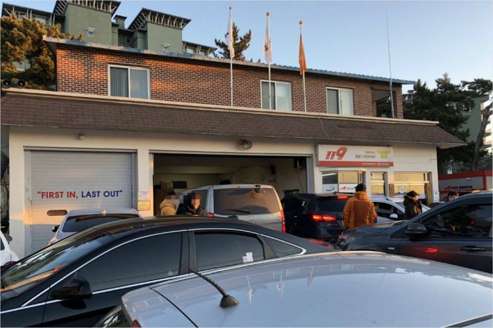 소방서 앞 점령한 해맞이 차량들 "도로는 아수라장"