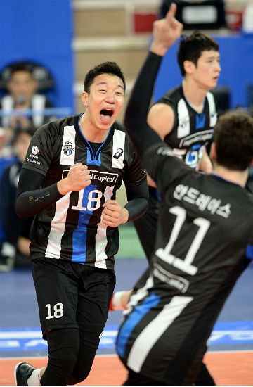 현대캐피탈은 '토종 에이스' 주장 문성민이 팀 내 최고인 20득점으로 공격을 주도했다. 까다로운 공도 득점으로 연결하는 해결사 능력은 여전했다. 블로킹 3개와 서브 에이스 1개도 곁들였다. 외국인 선수 안드레아스는 13득점으로 힘을 보탰다.