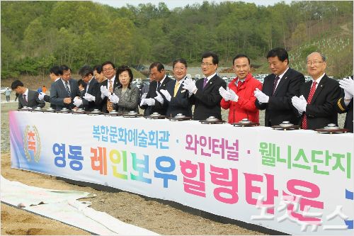 영동 레인보우 힐링타운은 영동읍 매천리 일원 53만여 ㎡ 부지에 총 2048억 원이 투입돼 와인테마터널, 웰니스단지, 힐링센터 등을 갖춘 힐링·체험관광단지를 조성하는 사업이다.