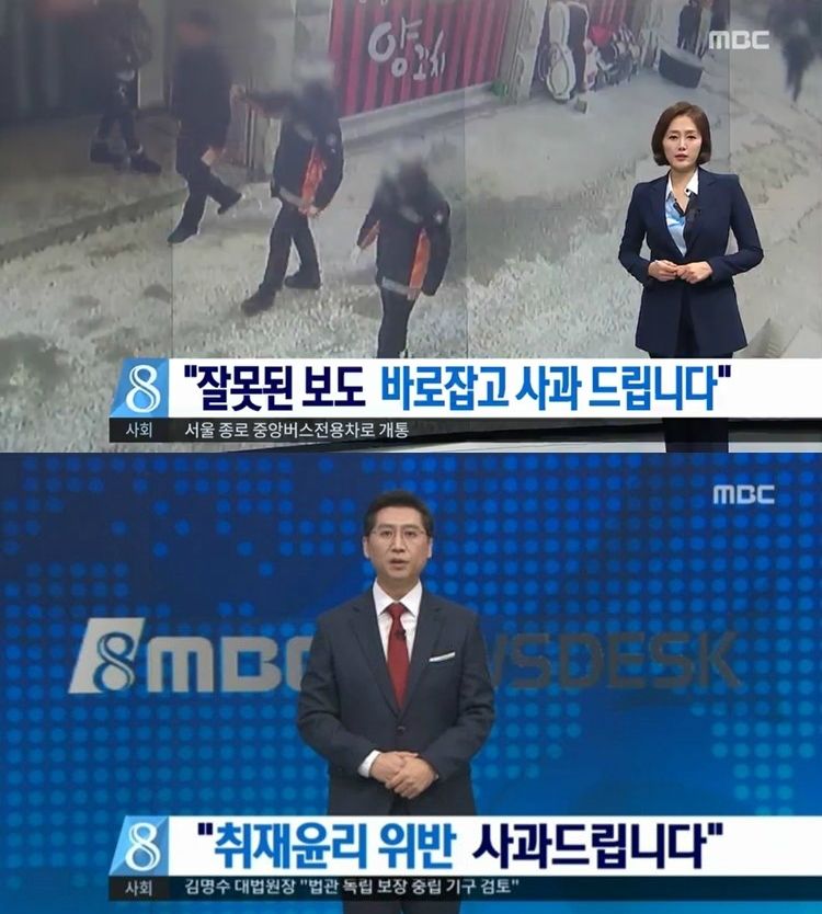 지난달 31일, 지난 2일 MBC '뉴스데스크'에서 나간 사과방송 (사진='뉴스데스크' 캡처)
