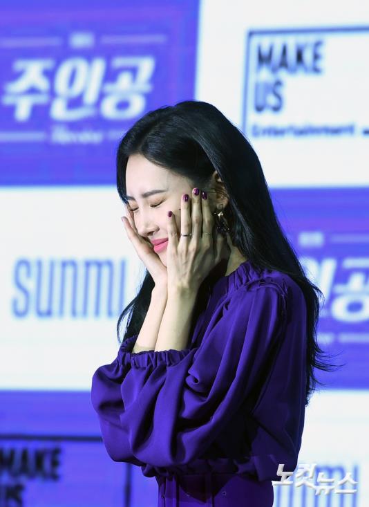 가수 선미가 18일 오후 서울 강남구 라마다 서울호텔에서 열린 싱글앨범 ‘주인공(Heroine)’ 쇼케이스에 참석해 포즈를 취하고 있다.