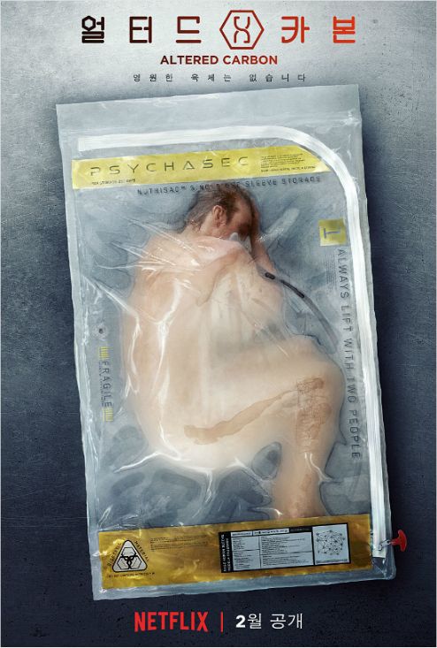 넷플릭스 오리지널 시리즈 '얼터드 카본'은 육체 교환과 의식 저장이 가능해진 300년 후의 인간세계를 그린다. 어느 날 억만 장자가 사망하고, 죽음의 원인을 추적하기 시작하며 이야기가 전개된다. 동명의 밀리언셀러 원작이 있는 작품이기도 하다.