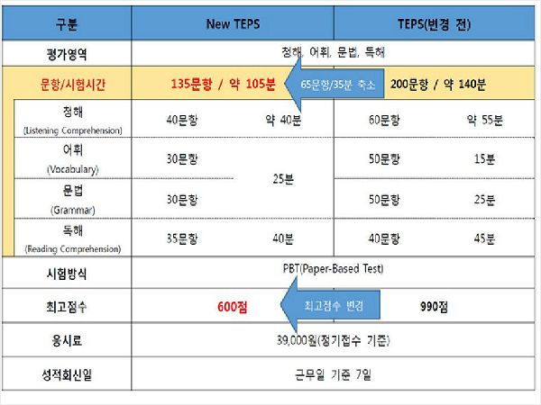 한편, TEPS관리위원회는 응시자들이 미리 시험을 체험하고 대비할 수 있도록 다음 달 25일 'New TEPS 프리뷰 테스트(Preview Test)'를 실시한다.
