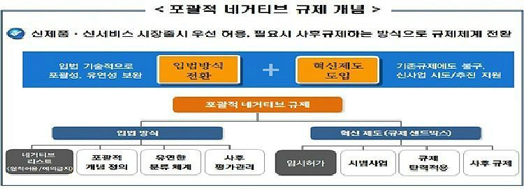 이른바 '포괄적 네거티브'다. '원칙 허용-예외 금지'를 골자로 한 기존 네거티브 리스트 방식에서 한걸음 더 나아간 개념이다.