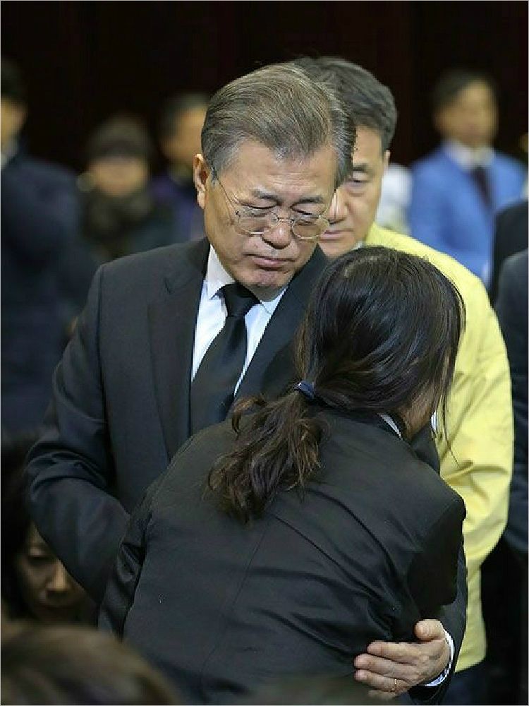 문재인 대통령이 지난 27일 밀양 세종병원 화재 참사 현장을 찾아 유가족들을 위로하고 있다. /청와대 제공