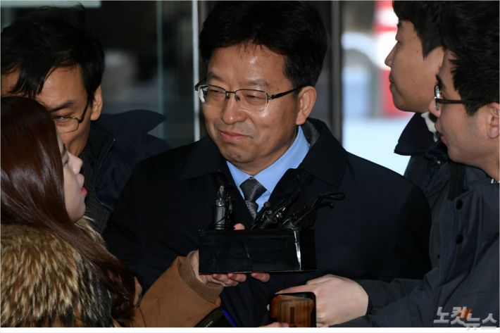 민간인 불법 사찰 폭로를 막기 위해 뒷돈을 건넨 혐의 등을 받고 있는장석명 전 청와대 공직기강비서관이 지난 25일 오전 서울 서초구 중앙지법에서 열린 영장실질심사에 출석하기 위해 법정으로 향하고 있다. (사진=이한형 기자/자료사진)