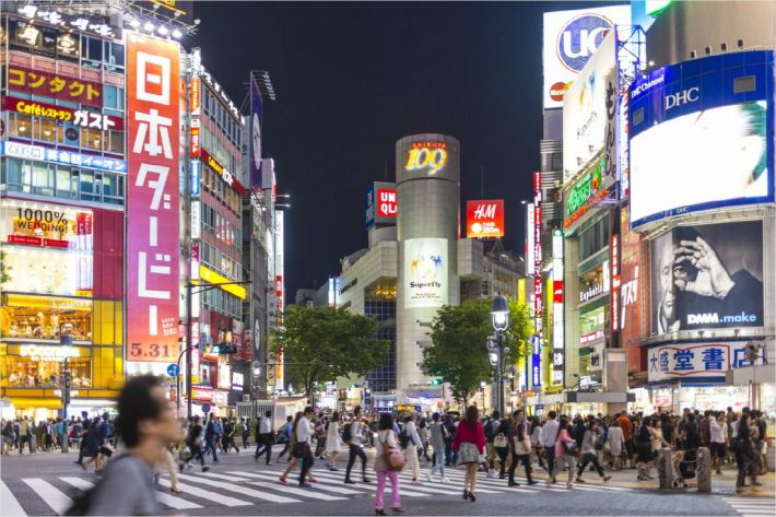 화려한 네온 사인과 많은 사람들로 북적이는 도쿄 시부야의 밤 풍경. (사진=웹투어 제공)