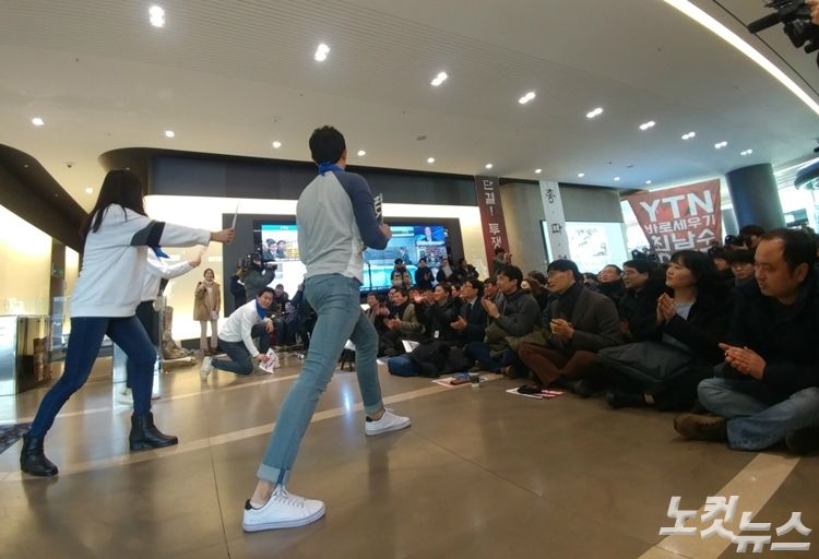 전국언론노동조합 YTN지부(지부장 박진수, 이하 YTN지부)는 1일 오전 9시 36분, 서울 마포구 상암동 YTN 사옥 내 로비에서 총파업 출정식을 열었다. 목적은 '최남수 사장 퇴진'과 '공정방송 회복'이다.