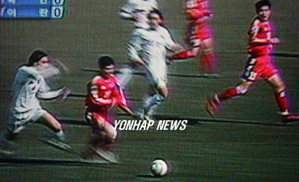 원정의 불리함을 의식한 이란은 골을 넣자 잠그기 작전으로 나왔고 발빠른 문인국과 장신 박성관을 교체 투입한 북한은 전반 막판부터 파상 공세를 폈지만 무위에 그쳤다.