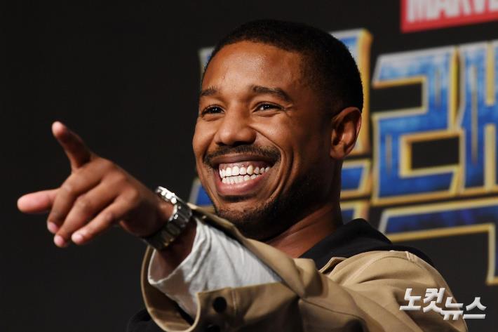 5일 서울 광화문 포시즌스호텔에서 열린 영화 '블랙팬서' 아시아 프레스컨퍼런스에서 마이클 B. 조던이 포즈를 취하고 있다.