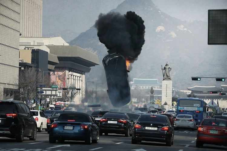 광화문에서 촬영한 차량 전복 장면 (사진=CJ엔터테인먼트 제공)