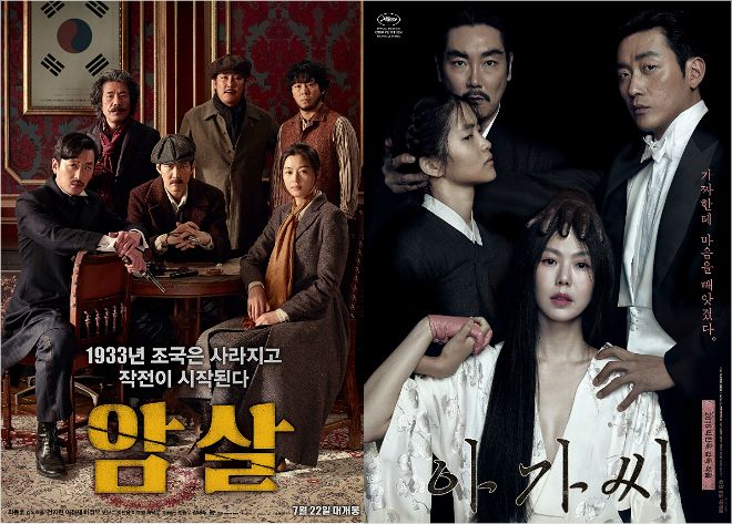 최근 5년 간 여성 주연의 상업영화 중 최대 스크린 수 약 1,000개 이상인 영화 4편 중 2편인 '암살'과 '아가씨'의 포스터.