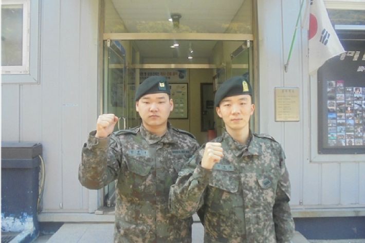 해안경계 도중 바다에 투신한 여성을 발견하고 빠른 대처로 구조한 육군 53사단 소속 강연찬(22) 일병과 김민수(24) 하사. (사진=육군 53사단 제공)