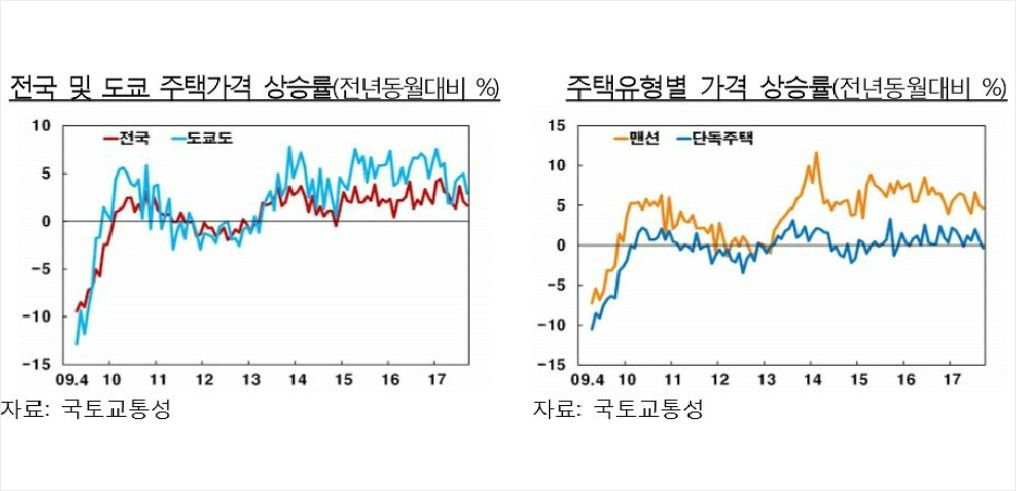 특히 도쿄도는 맨션이 2013~2017년중 연평균 6.6% 상승하면서 전체 주택가격 상승을 주도하고 있다.