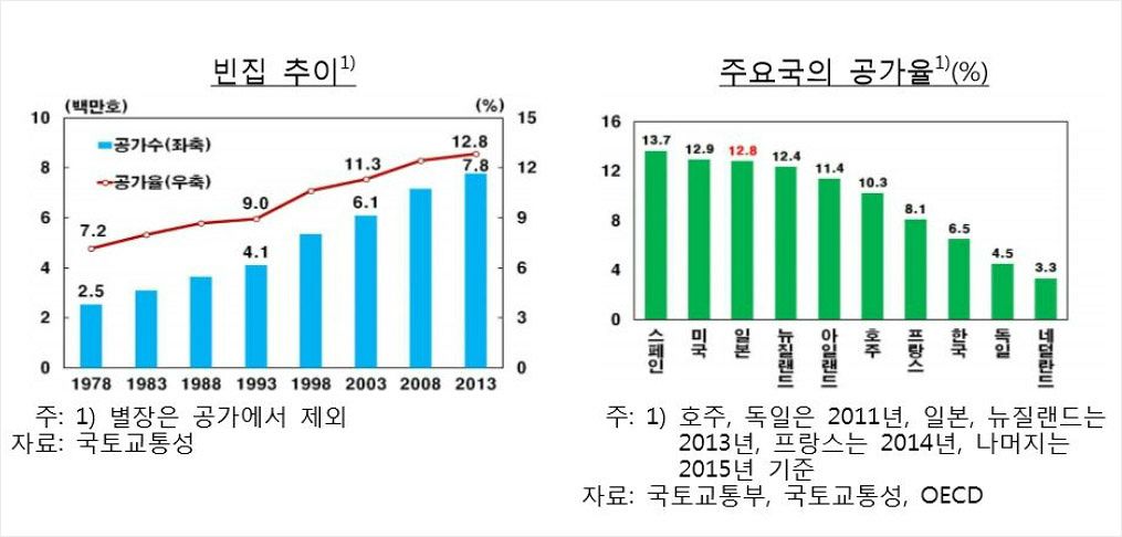 일본의 빈집은 1993년 410만채에서 2013년 780만채로 20년 사이 두배 가까이로 늘었다. 전체 주택에서 빈집이 차지하는 비율도 같은 기간 9.0%에서 12.8%로 상승했다. 우리나라(6.5%)의 두 배 수준이고 네덜란드(3.3%), 독일(4.5%) 등 주요국에 비해서도 높다.