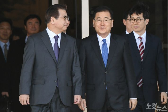 문재인 대통령의 대북 특별사절단. 왼쪽부터 서훈 국정원장, 정의용 청와대 국가안보실장. (사진=자료사진)