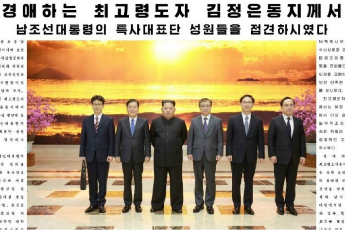 이어 남북 '수뇌상봉'과 관련한 문재인 대통령의 뜻을 전해 듣고 의견을 교환했으며 만족한 합의를 봤다는 뉴스도 전해졌다.