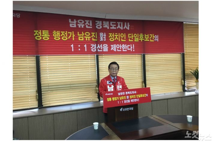 남유진 경북도지사 예비후보는 13일 자유한국당 경북도당에서 기자회견을 열고 국회의원 본연의 임무에 충실해야 한다며 도지사 출마 선언을 한 국회의원들 간의 단일화를 촉구했다.