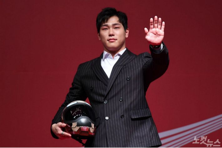 '내가 바로 아이언맨!' 21일 서울 웨스틴조선호텔에서 열린 제23회 코카콜라 체육대상 시상식에서 스켈레톤 윤성빈이 최우수선수상 수상한 뒤 포즈를 취하고 있다. (사진=박종민 기자)