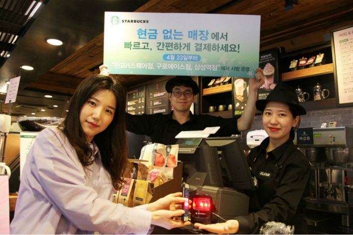㈜스타벅스커피 코리아가 판교H스퀘어점, 삼성역점, 구로에이스점 등 총 3개 매장을 현금 없는 매장 시범 매장으로 선정하고, 한 달동안의 사전 홍보 기간을 거쳐 4월23일부터 현금 거래 없는 매장 시범 운영에 들어간다.