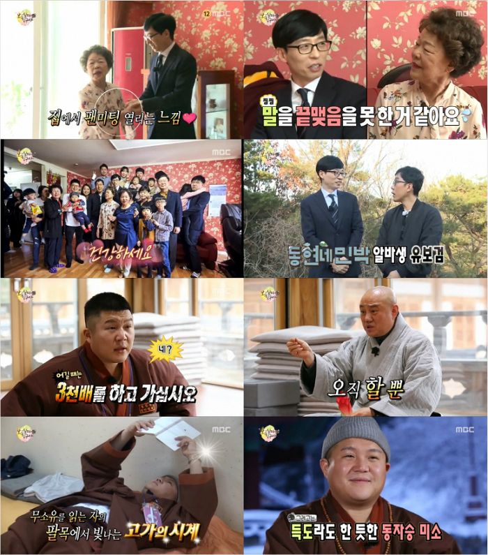 유재석은 처음으로 김제동 어머니의 집을 찾아 그의 가족들로부터 진심 어린 환영과 응원을 받았고, 조세호는 묵언수행과 스님과의 속 깊은 대화를 통해 가슴 뭉클한 위로와 깨달음을 얻었다. 다음 주 마지막 인사를 앞두고 있는 상황에서 이들의 모습들은 시청자들에게 진한 여운을 남겼다.
