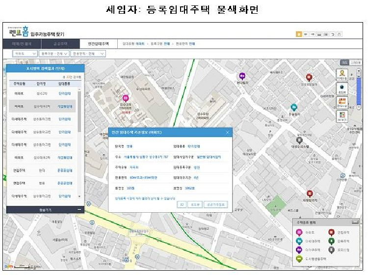 세입자 역시 등록임대주택 소재지를 지도 기반 서비스로 편리하게 확인할 수 있다. 등록한 민간임대주택엔 4~8년 임대의무 기간 안정적으로 거주할 수 있다.