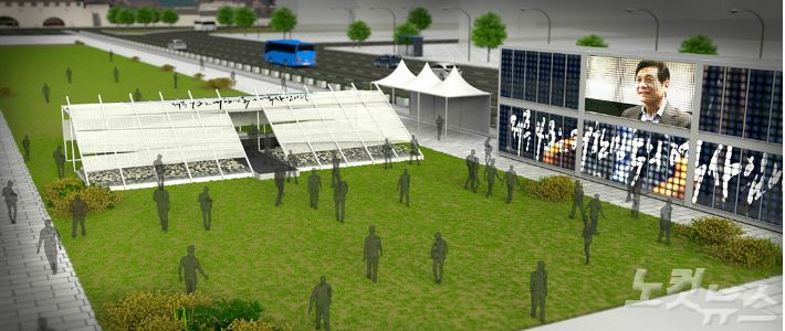 서울 광화문 광장에 설치되는 분향소 가상 그림. 국가가 인정한 제주 4·3 피해자의 이름을 모두 적은 흰 천이 분향소를 감쌀 예정이다.