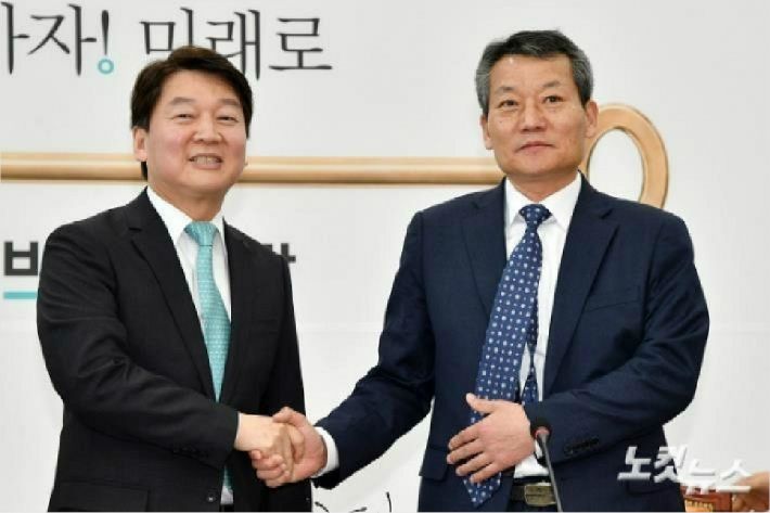 바른미래당 안철수 인재영입위원장이 지난달 20일 국회에서 1호 인재영입 인사인 정대유 전 인천시 시정연구단장과 악수를 하고 있다.(사진=자료사진)