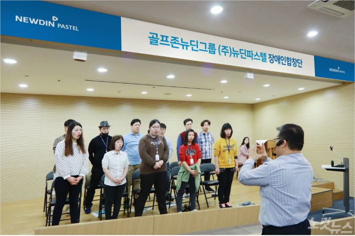 '뉴딘파스텔 직업장애인 합창단'은 장애로 인해 가려졌던 노래에 대한 끼와 재능을 개발해 직업음악인으로서 꿈을 이룰 수 있는 기회를 제공하고자 창단됐으며, 현재 서류 심사 및 공개 오디션을 통해 지적·지체·정신 장애인 11명(여성 5명, 남성 6명)이 채용돼 근무 중이다.