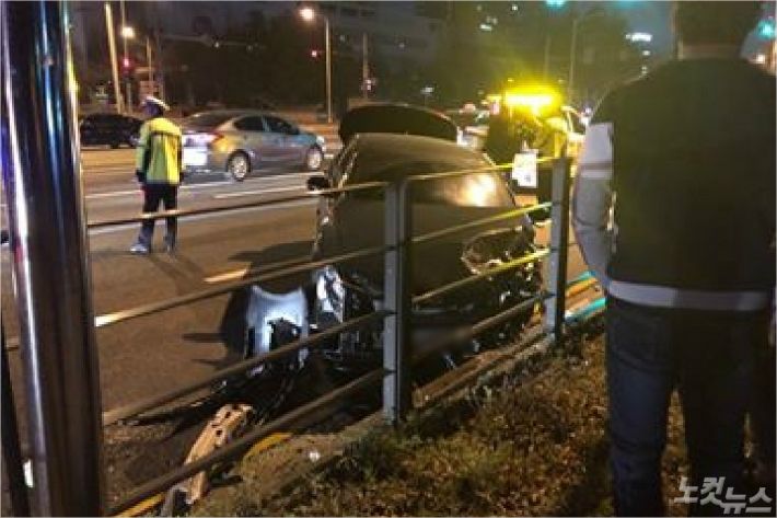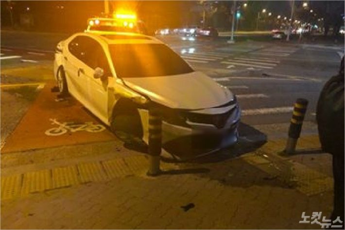 2일 오전 12시 20분쯤 대전 서구 둔산동 모정네거리에서 이모(16)군의 차량이 순찰차를 피해 달아나다 다른 차량과 충돌했다. (사진=독자 제공)