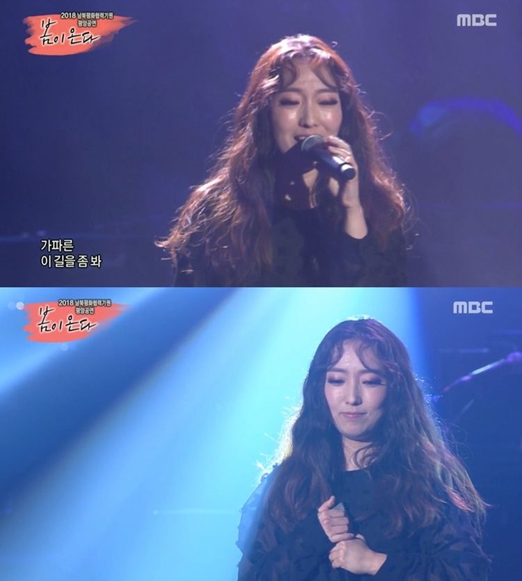 가수 정인은 지난 1일 북한 평양 동평양대극장에서 열린 '2018 남북 평화 협력 기원 평양 공연-봄이 온다'에서 '오르막길'과 '얼굴'을 불렀다. (사진='봄이 온다' 캡처)