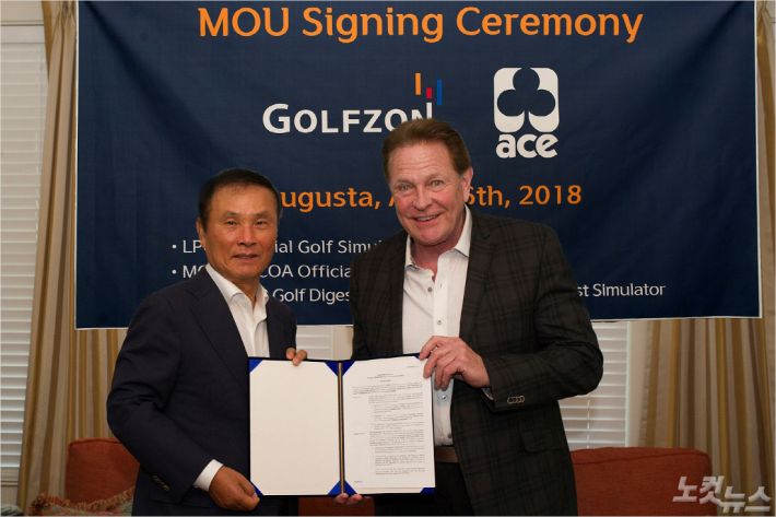 이를 위해 골프존은 지난 6일 미국 현지 법인인 골프존 아메리카(GOLFZON AMERIAC Inc.)가 시카고를 중심으로 미국 중서부에서 부동산 사업과 레스토랑 사업을 하고 있는 '호프만 알파 오메가 디벨롭먼트 그룹(Hoffmann Alpha Omega Development Group LLC)'과 스크린골프 시스템을 공급하기 위한 양해각서(MOU)를 체결했다.