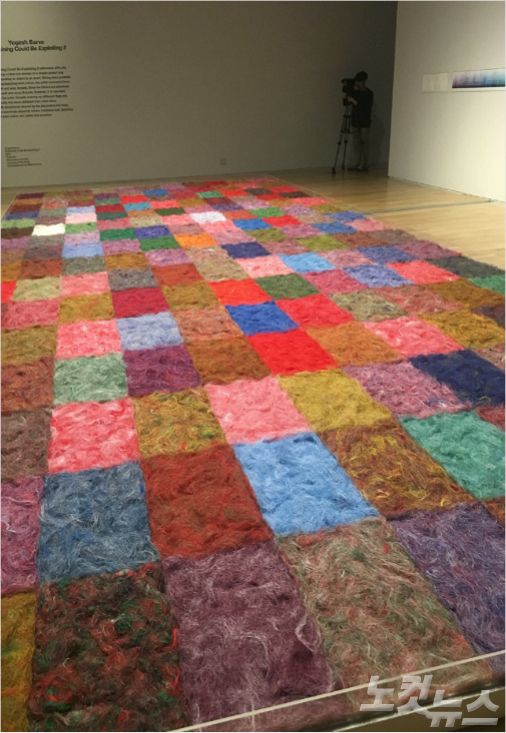 인도에서 활동하는 요게쉬 바브는 77개 국가의 국기 실을 한올한올 풀어 헤쳐 대형 작품을 만들어냈다. 각 나라에서 존엄의 상징이 되는 국기를 해체하는 작업을 통해 국가와 민족의 정체성과 경계에 대해 물음을 던졌다.