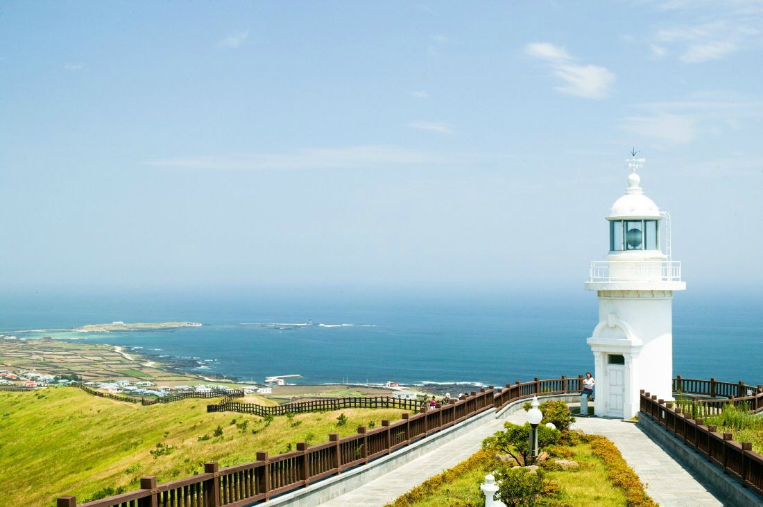 봄기운이 완연하게 찾아든 제주 우도 등대 모습. (사진=웹투어 제공)