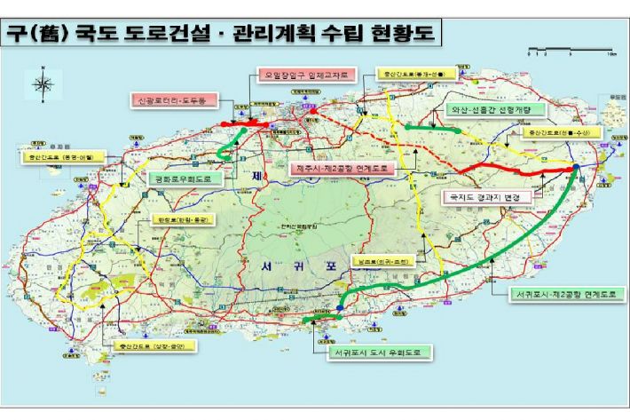 또 서귀포시-제2공항 연계도로는 국토부의 제2공항 개발사업 일정에 맞춰 추진할 계획이며, 이달중 제주특별자치도 구국도 도로건설 관리계획을 고시해 법적근거도 확보할 예정이다.