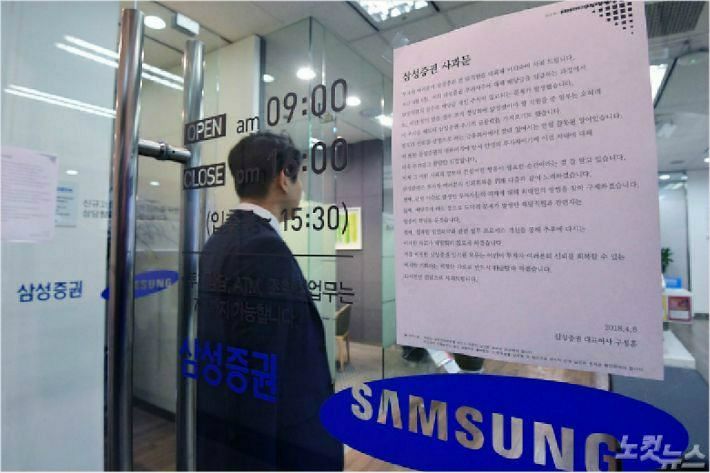 삼성증권은 지난 6일 담당 직원의 실수로 실제 존재하지 않는 유령주식을 잘못 배당했고 일부 직원이 이 가운데 501만여주를 팔아치우는 대형 금융사고를 일으킨 바 있다.