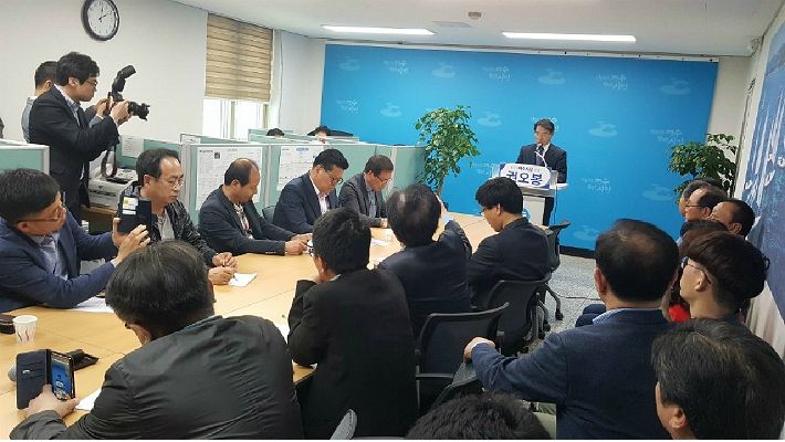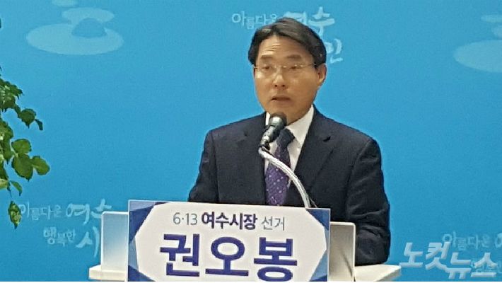 권오봉 여수시장 예비후보의 기자회견장(사진=고영호 기자)