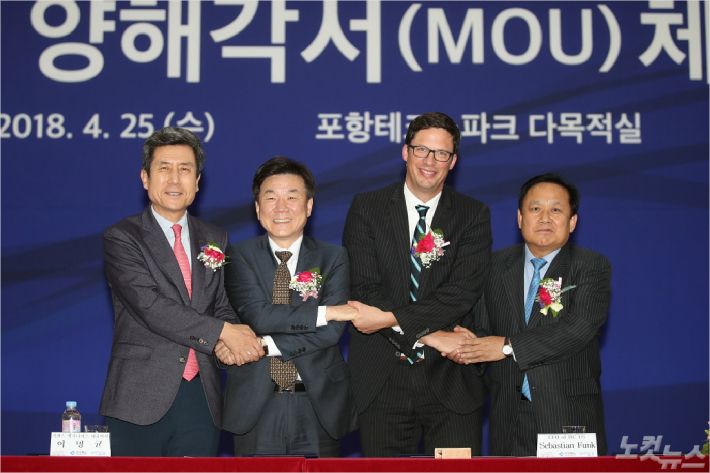 이강덕 포항시장은 "글로벌 기업의 포항 투자로 지진 이후 침체된 지역 경제가 활력을 찾을 것으로 기대된다"고 말했다.