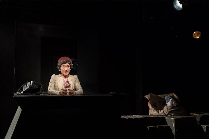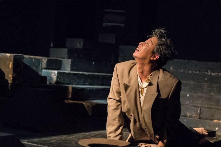 ▶ 위니에게 윌리의 어떤 존재였을까. = "윌리는 위니가 힘들 때마다 자극을 준다. 화제를 바꾸게 하거나, 소리를 내서 중단시켜준다. 2막에서는 윌리가 위니에게 힘겹게 기어온다. 그녀 곁에서 일상을 유지하게끔 하는 거다. 겨우 이틀 혹은 사흘밖에 더 살지 못하더라도, 고통 속에 함몰해 있는 위니가 조금이라도 힘을 받을 수 있게 마지막을 그려보고자 했다."