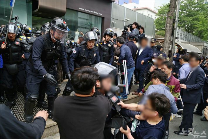 실제로 현장에서는 시민단체 관계자 10여 명이 인도에 쓰러져 일어나지 못하거나 코피를 흘리는 모습도 볼 수 있었다.