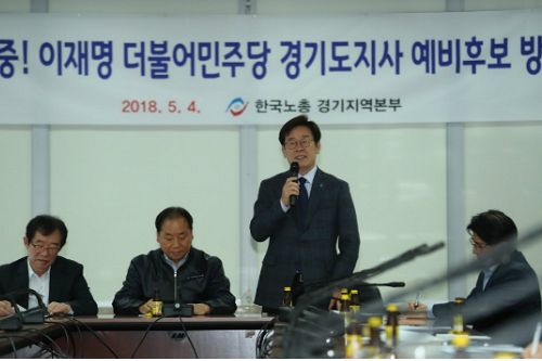 이재명 더불어민주당 경기도지사 예비후보가 4일 한국노총 경기지역본부와의 간담회에서 "노동자가 노동 얘기를 하면 빨갱이 취급을 받는 우리 사회의 노동문화, 사회문화를 뒤집어야 한다"고 강조하면서, "경기도를 노동자 중심으로 제대로 한 번 해보고 싶다는 생각을 가지고 있다"고 밝혔다.
