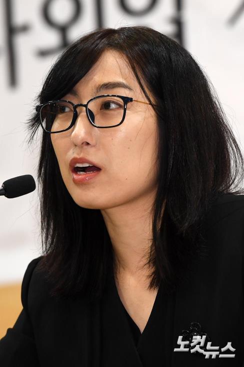 안미현 검사가 15일 서울 변호사교육문화관에서 강원랜드 수사 외압 폭로 기자회견을 하고 있다.