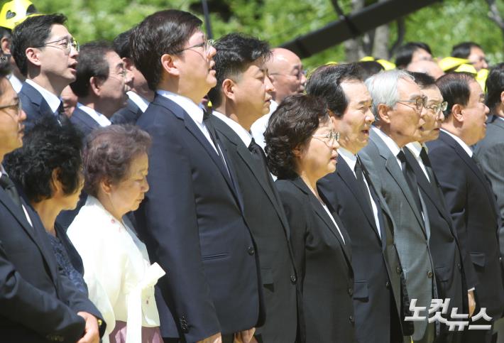 노무현 전 대통령 9주기, '임을 위한 행진곡' 부르는 권양숙 여사와 참석자들